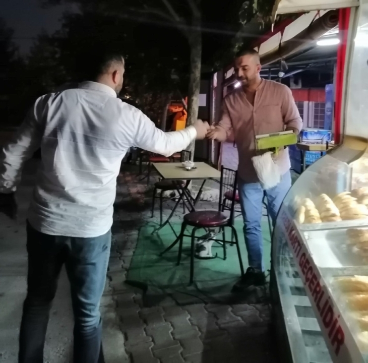 Seher vaktinde ilçedeki işletmeleri gezen Pınarbaşı Esnaf ve Sanatkarlar Odası Başkanı Cezmi Çulhaoğlu, Ahilik Haftası nedeniyle esnaflara ‘Siftah’ parası dağıttı.